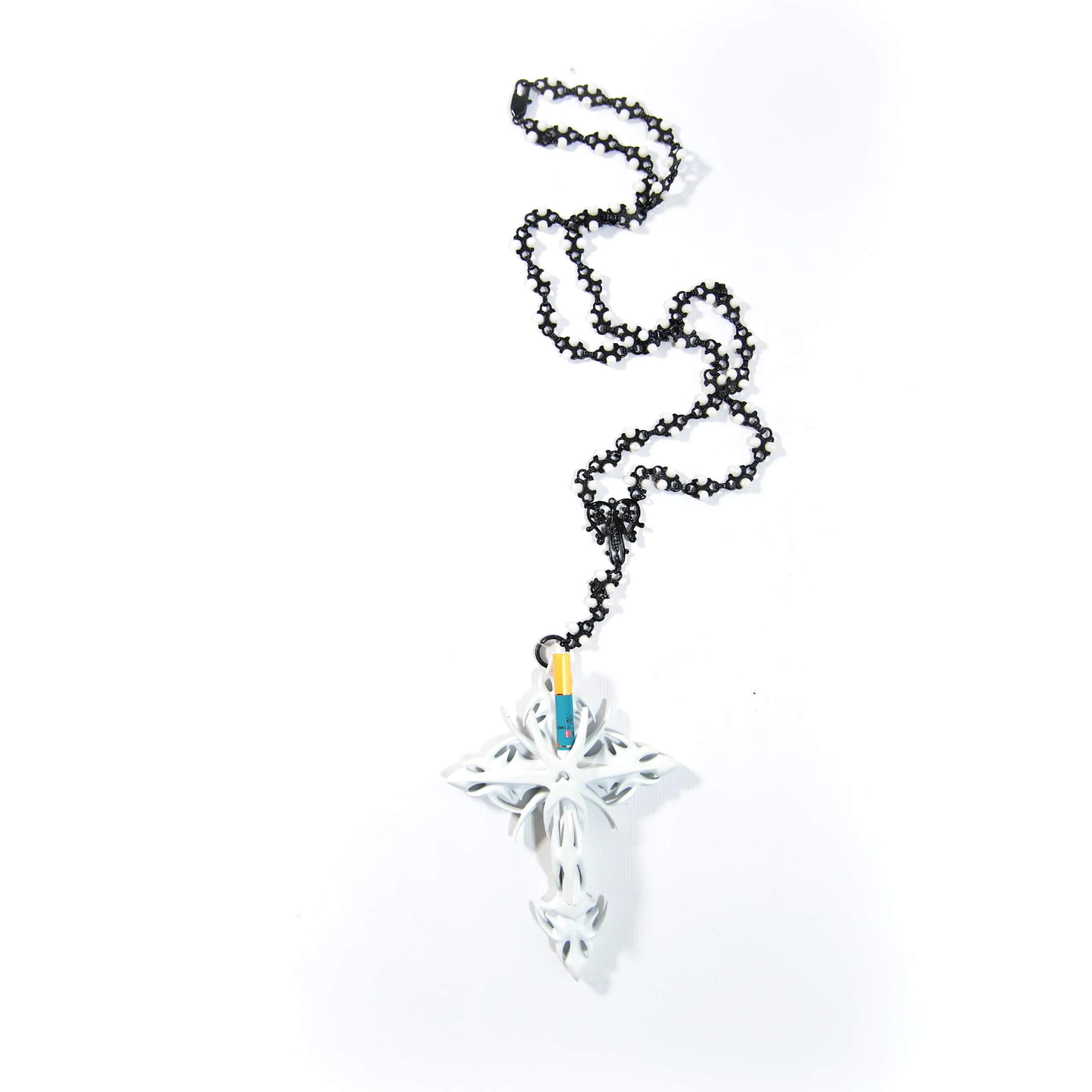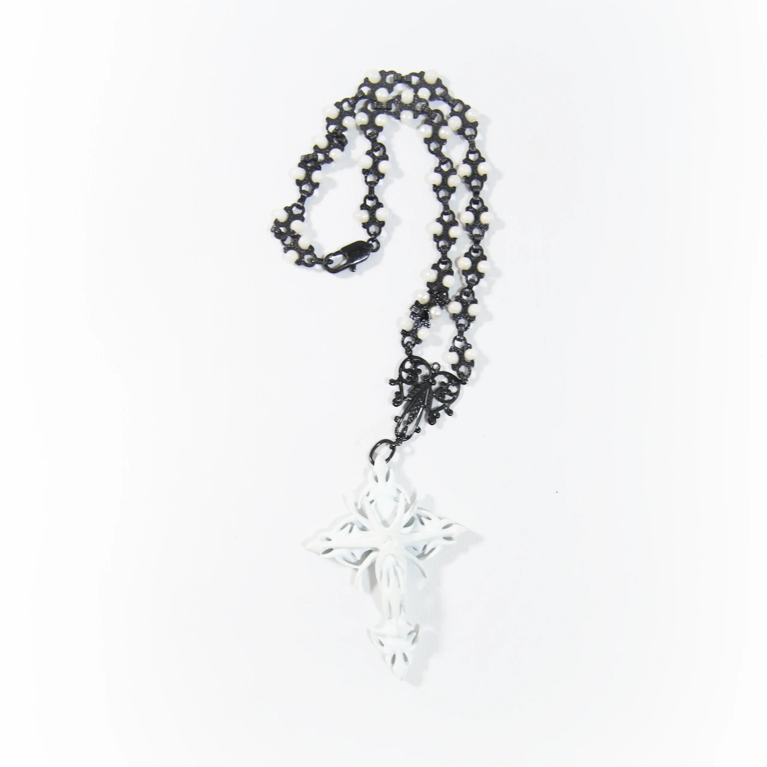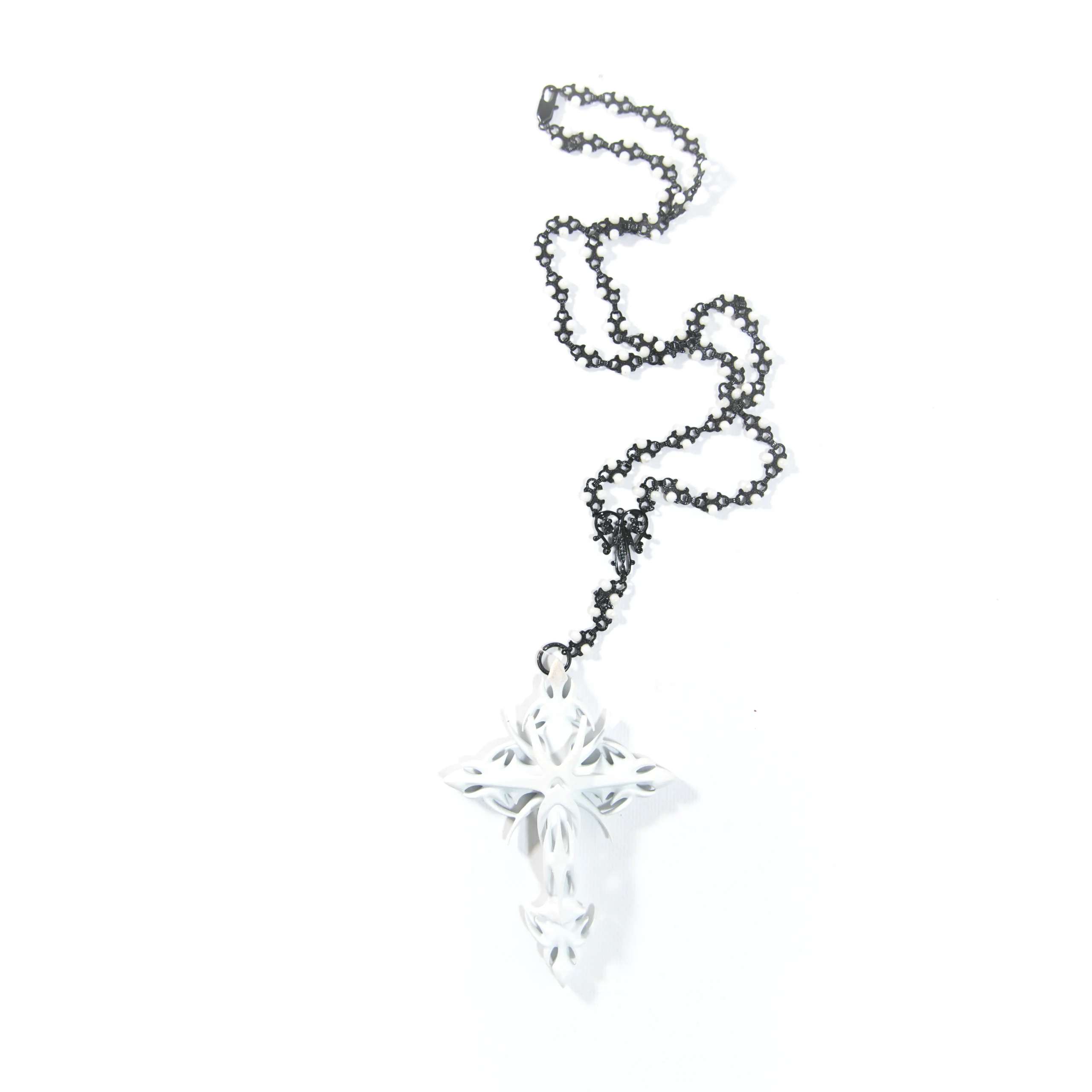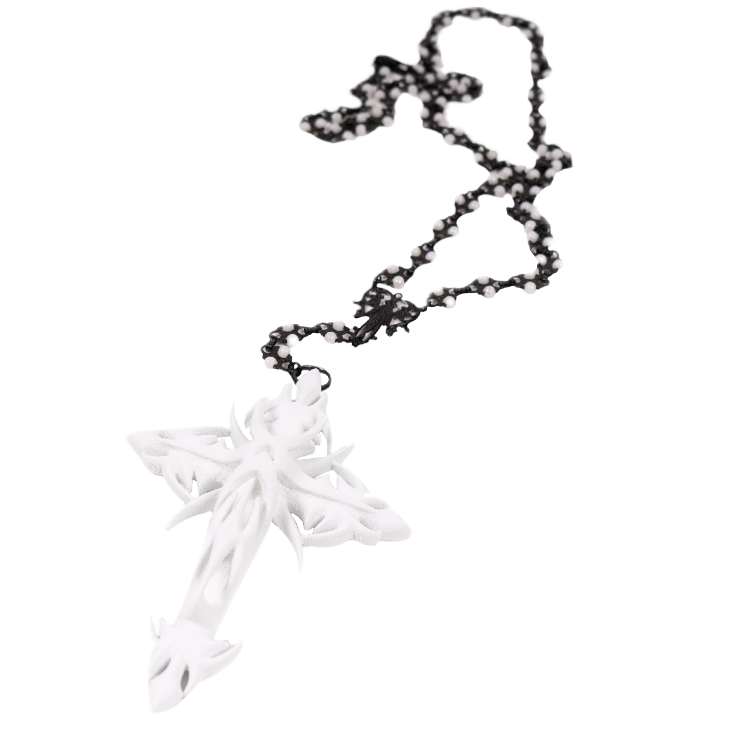 Holy Donna Es Un Suspiro De Rebeldía Y Estilo. Confeccionado Mediante La Impresión 3D En Nylon, Perlas De Plástico, Cadena Base De Latón Y Baño Cobre Oxidado Y Lacado Negro Eco, Hipoalérgeno (Libre De Níquel. Julieta Quiso Dar Un Giro A La Bisutería Convirtiéndola En Diseño De Producto Siendo, En Este Caso, Funcional.