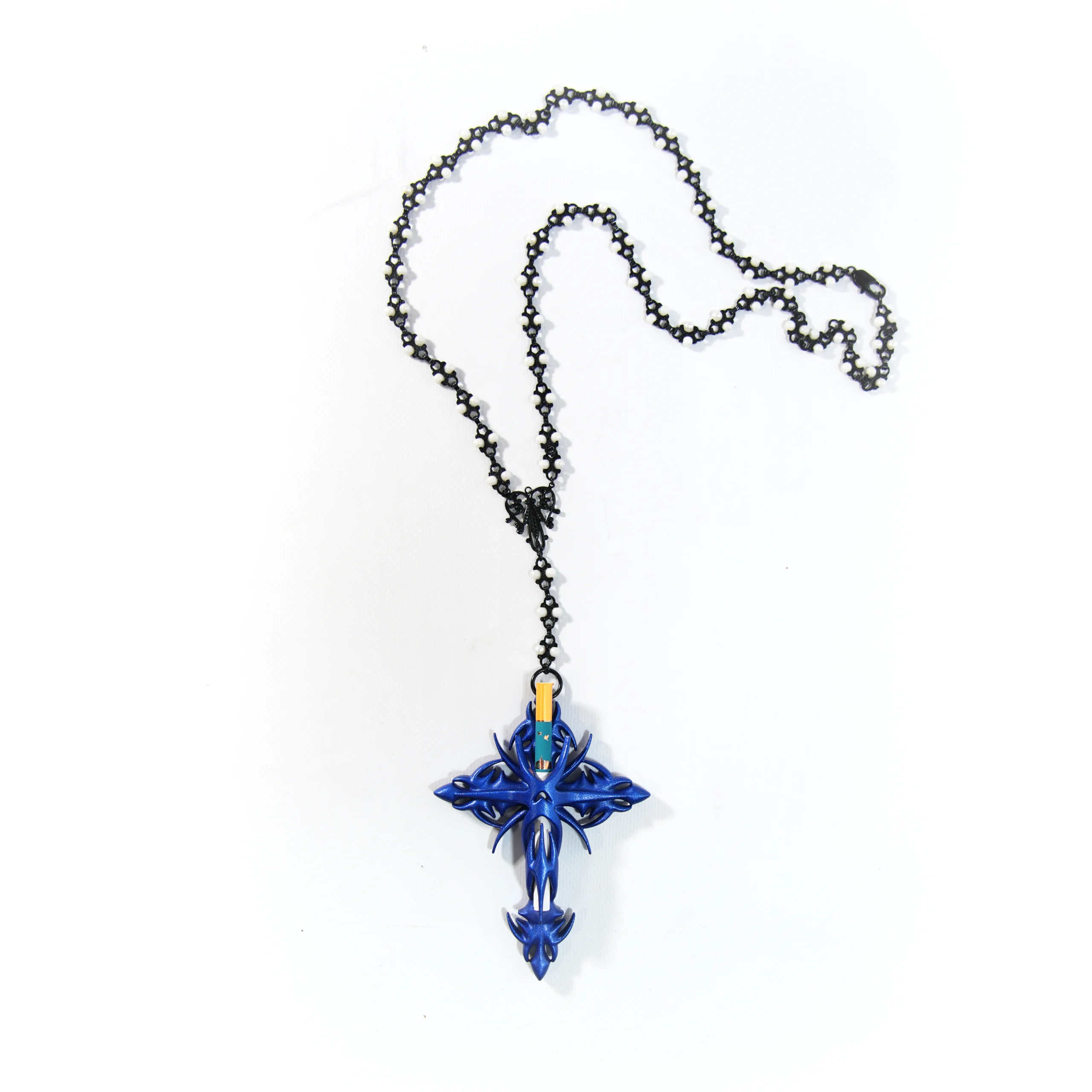 Holy Donna Es Un Suspiro De Rebeldía Y Estilo. Confeccionado Mediante La Impresión 3D En Nylon, Perlas De Plástico, Cadena Base De Latón Y Baño Cobre Oxidado Y Lacado Negro Eco, Hipoalérgeno (Libre De Níquel. Julieta Quiso Dar Un Giro A La Bisutería Convirtiéndola En Diseño De Producto Siendo, En Este Caso, Funcional.