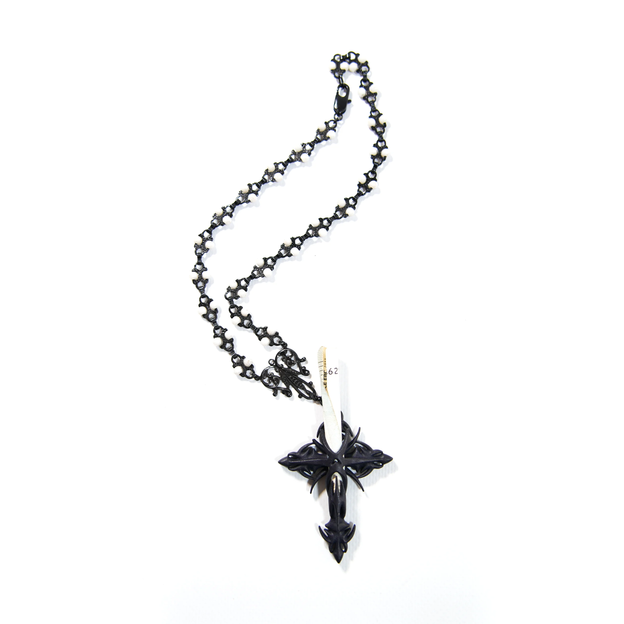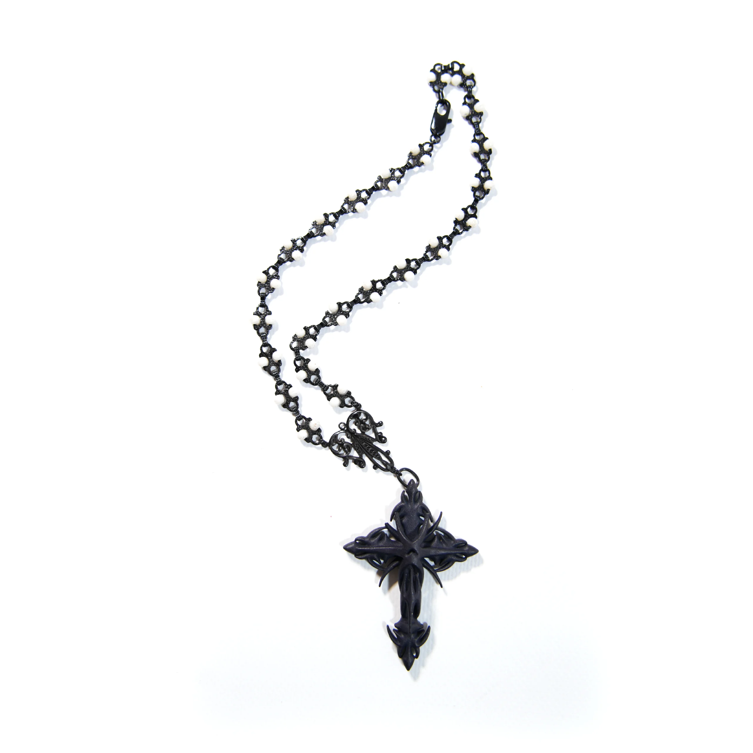 Holy Donna Es Un Suspiro De Rebeldía Y Estilo. Confeccionado Mediante La Impresión 3D En Nylon, Perlas De Plástico, Cadena Base De Latón Y Baño Cobre Oxidado Y Lacado Negro Eco, Hipoalérgeno (Libre De Níquel. Julieta Quiso Dar Un Giro A La Bisutería Convirtiéndola En Diseño De Producto Siendo, En Este Caso, Funcional.