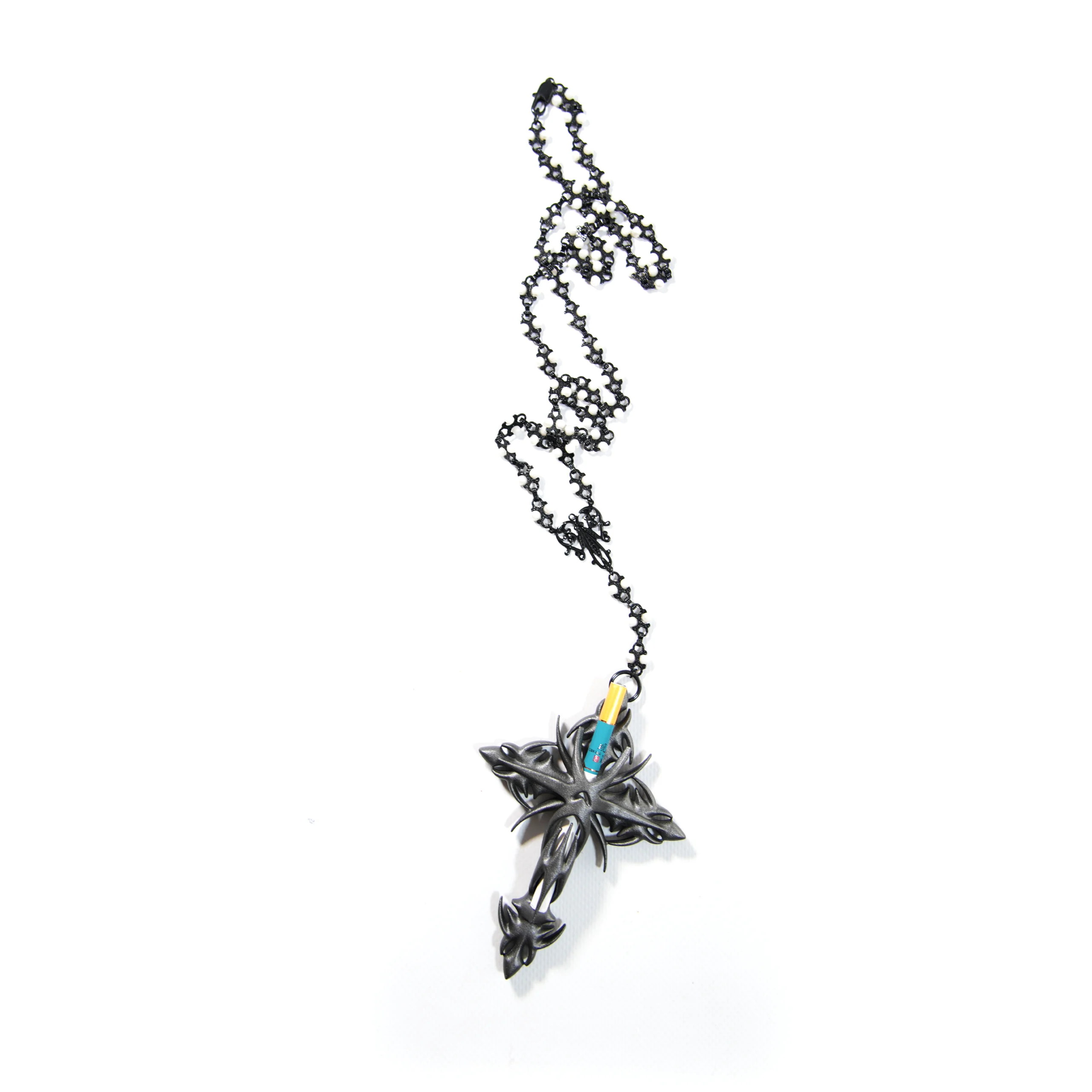 Holy Donna Es Un Suspiro De Rebeldía Y Estilo. Confeccionado Mediante La Impresión 3D En Nylon, Perlas De Plástico, Cadena Base De Latón Y Baño Cobre Oxidado Y Lacado Negro Eco, Hipoalérgeno (Libre De Níquel. Julieta Quiso Dar Un Giro A La Bisutería Convirtiéndola En Diseño De Producto Siendo, En Este Caso, Funcional.