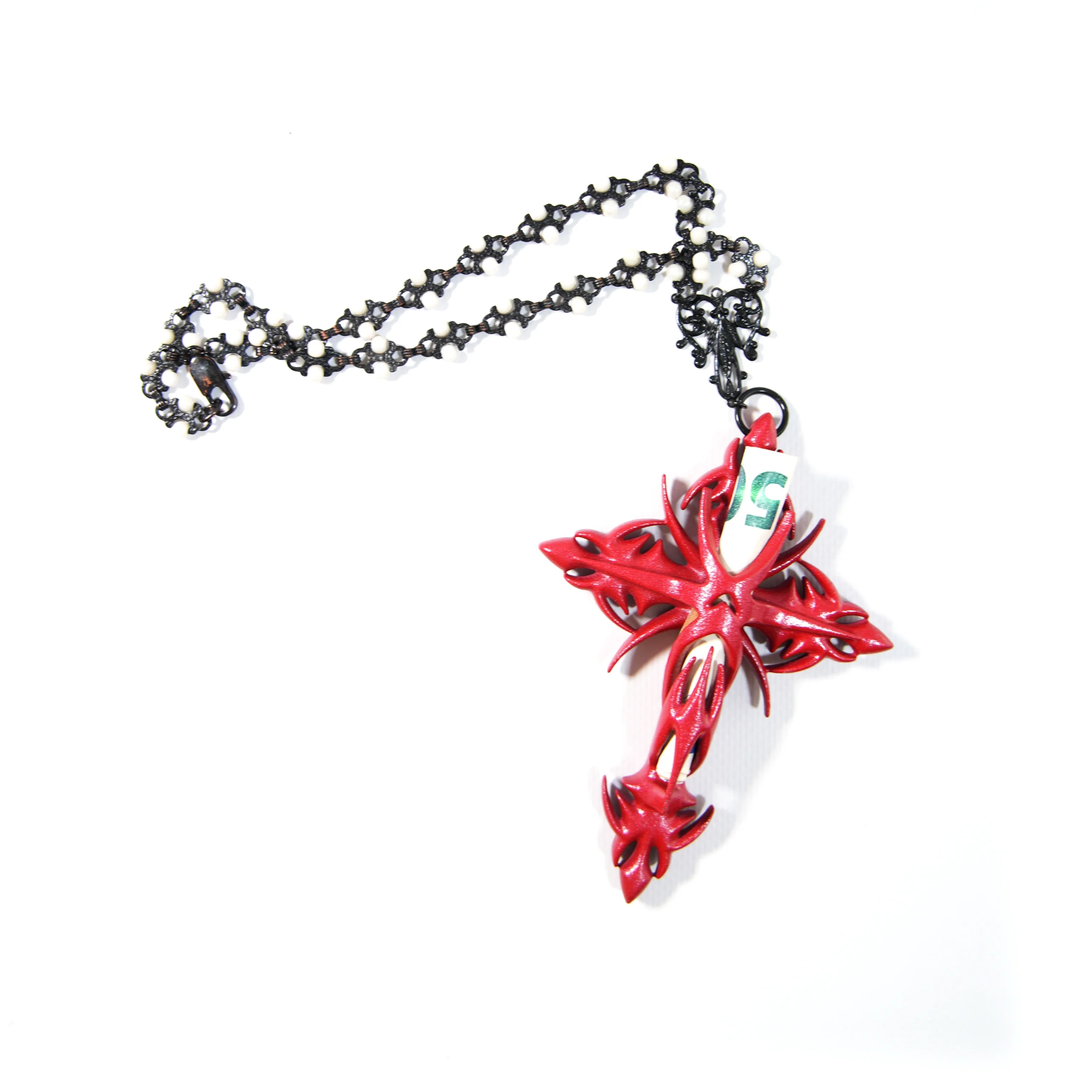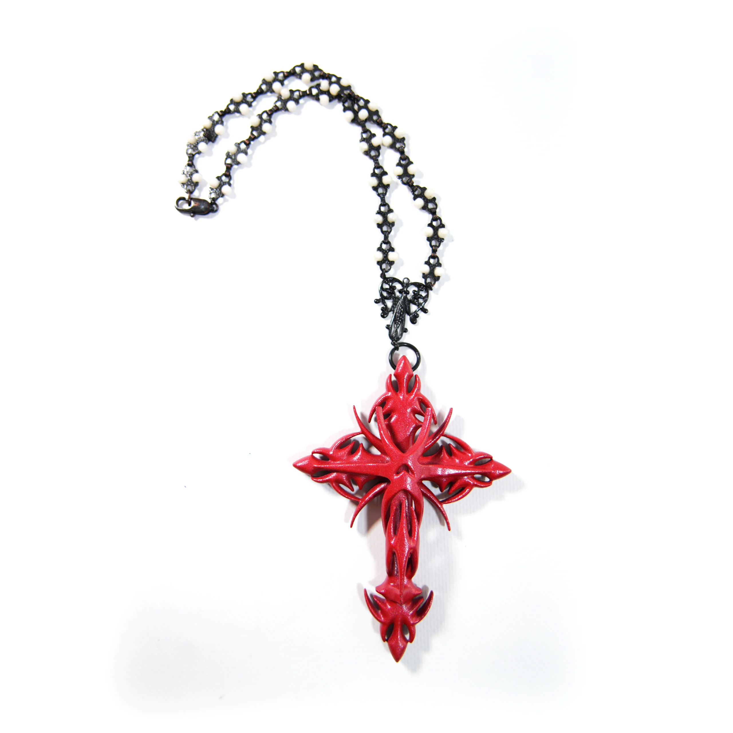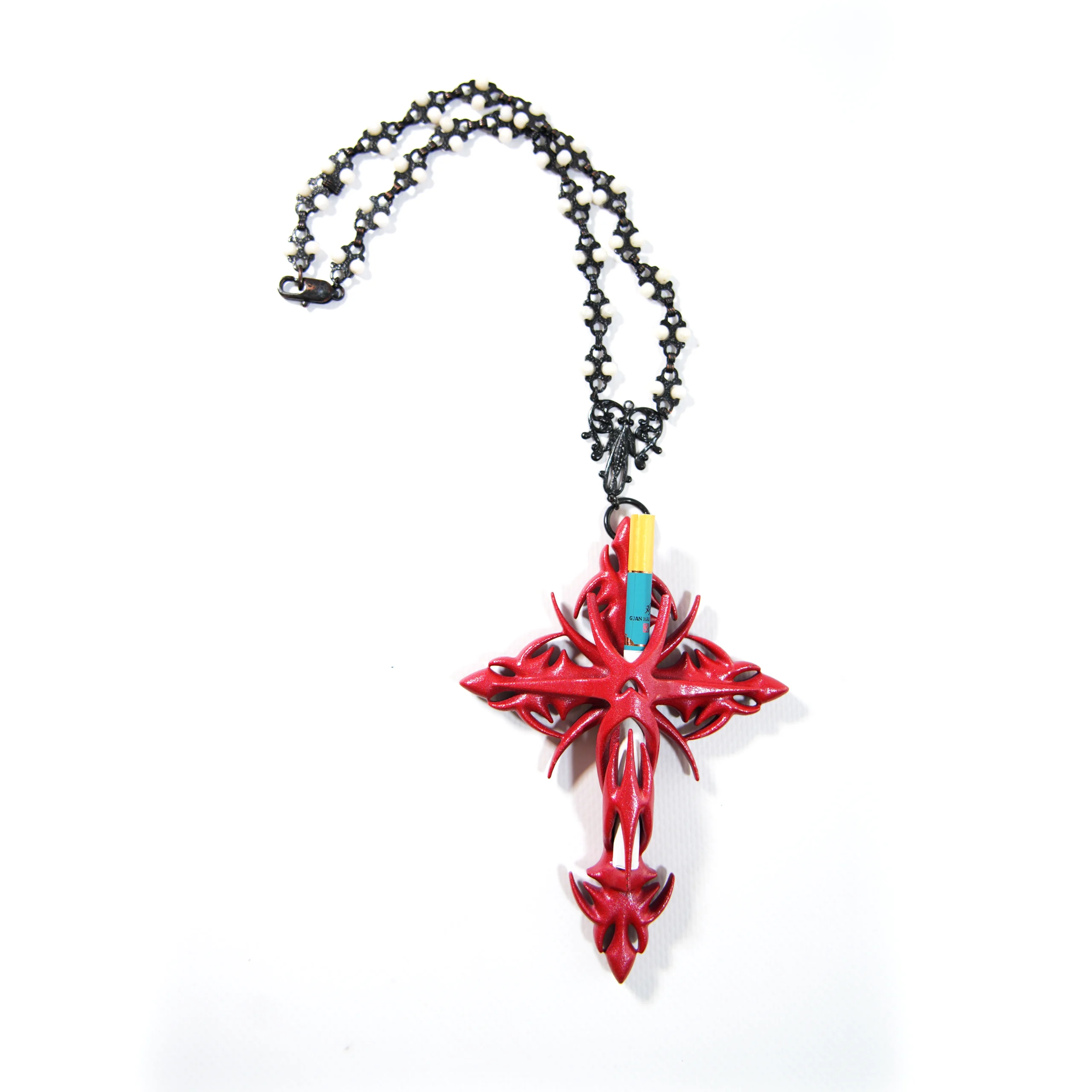 Holy Donna Es Un Suspiro De Rebeldía Y Estilo. Confeccionado Mediante La Impresión 3D En Nylon, Perlas De Plástico, Cadena Base De Latón Y Baño Cobre Oxidado Y Lacado Negro Eco, Hipoalérgeno (Libre De Níquel. Julieta Quiso Dar Un Giro A La Bisutería Convirtiéndola En Diseño De Producto Siendo, En Este Caso, Funcional.